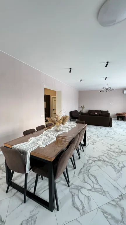 10 спальных мест: 2 спальни с двуспальными кроватями + 3 раздвижных дивана в гостиной. Можно организовать дополнительные спальные места (2) — раздвижной диван с доплатой.